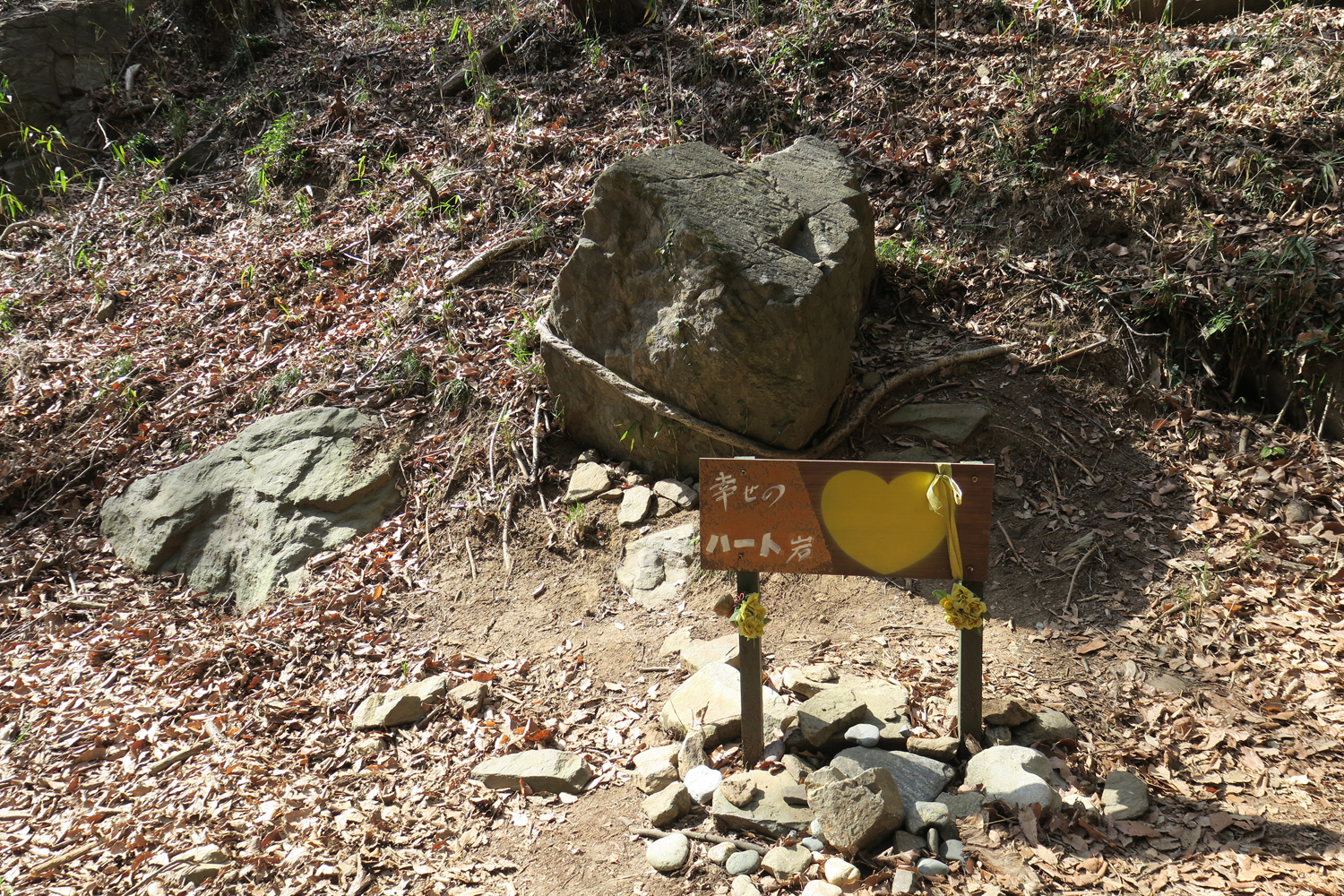 奥にある大きな岩がハート岩ですが、看板下にもたくさんのハート岩がありました。いくつあるか分かりますか?